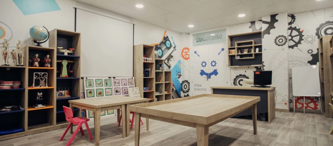 Dizayner, okulun ihtiyaç ve işlevselliğini analiz ederek tasarımı planlar, kaliteli malzemeler ve uzman ekibiyle sınıfları ve ortak alanları öğrenmeyi destekleyen şık ve fonksiyonel mekanlara dönüştürür.